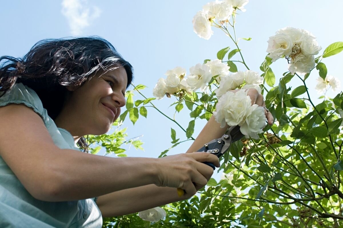 Lady pruning roses in NZ