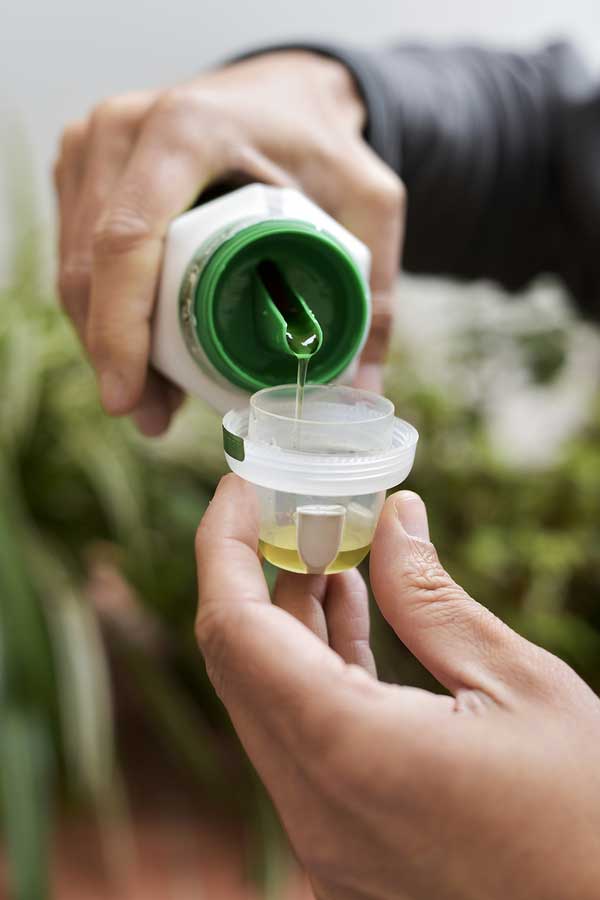 Man pours liquid fertiliser
